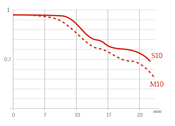 Se suele decir que las curvas S10/M10 nos dan idea del contraste del objetivo, el comportamiento global digamos.